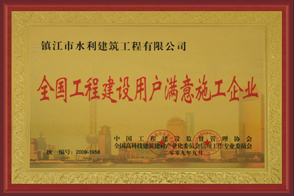 公司被評為重合同守信用企業、江蘇省水利安全生產標準化二級單位、AAA級資信企業、誠信示范企業、全國工程建設用戶滿意施工企業。